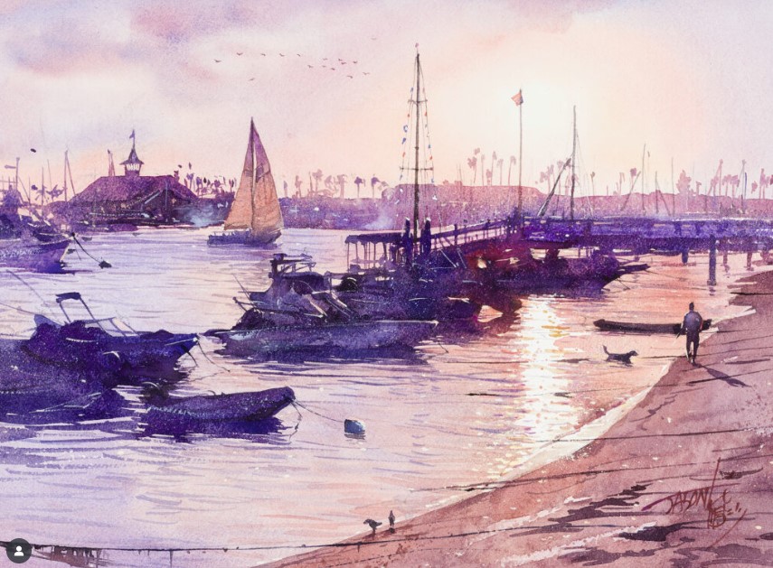 Jason Li Was the Winner of the grand prize at Laguna Beach. There were only 3 watercolorists, Jason, Geoff, and I. It was so great to see a watercolor win the grand prize. Painting that won pictured